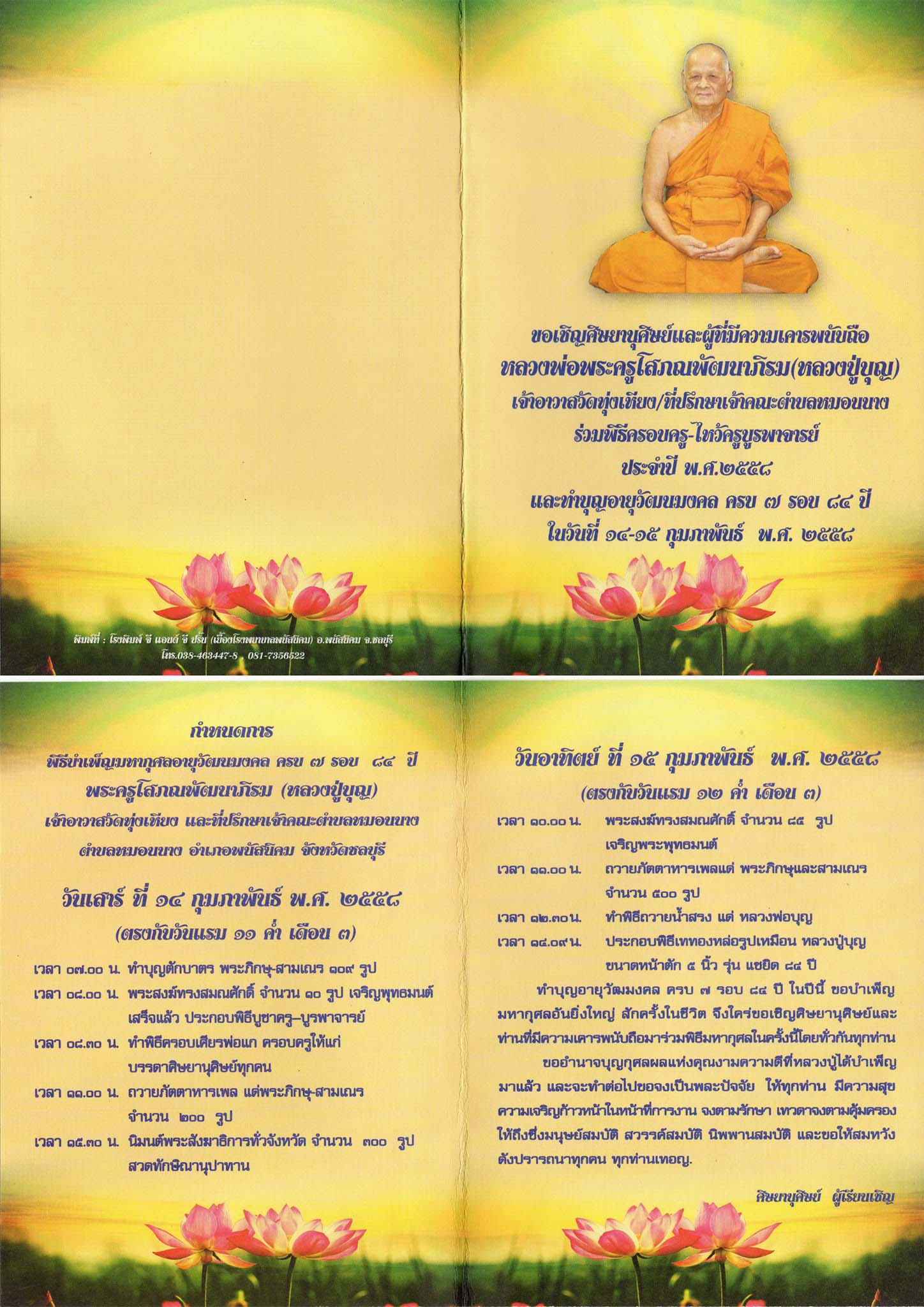 ขอเชิญศิษยานุศิษย์ ผู้ที่มีความเคารพนับถือใน พระมงคลโมลี วิิ. หลวงปู่บุญ