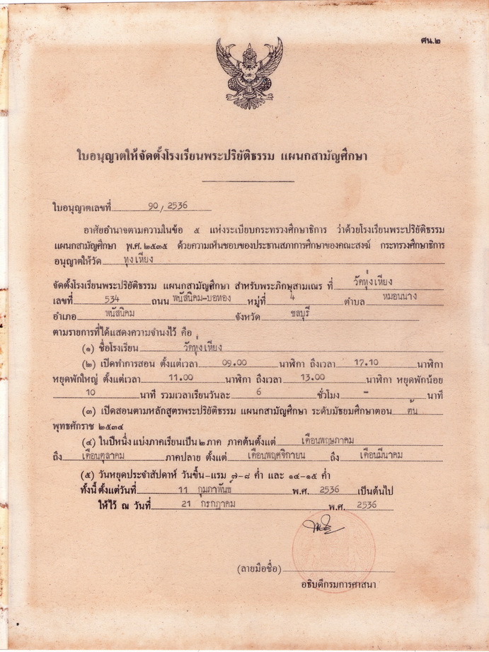 ได้รับใบอนุญาตให้จัดตั้งเป็น โรงเรียนพระปริยัติธรรม แผนกสามัญศึกษา