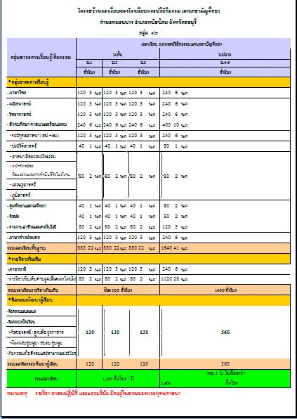 โรงเรียนได้จัดสัดส่วนสาระการเรียนรู้และเวลาเรียนต่อไปนี้ |